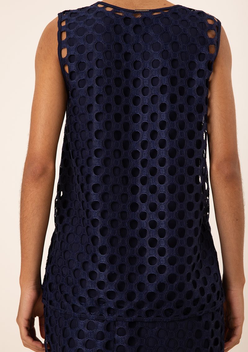 FemininoRoupasBlusasRegata Maria.Valentina Solta Decote Careca Padrão Azul Escuro