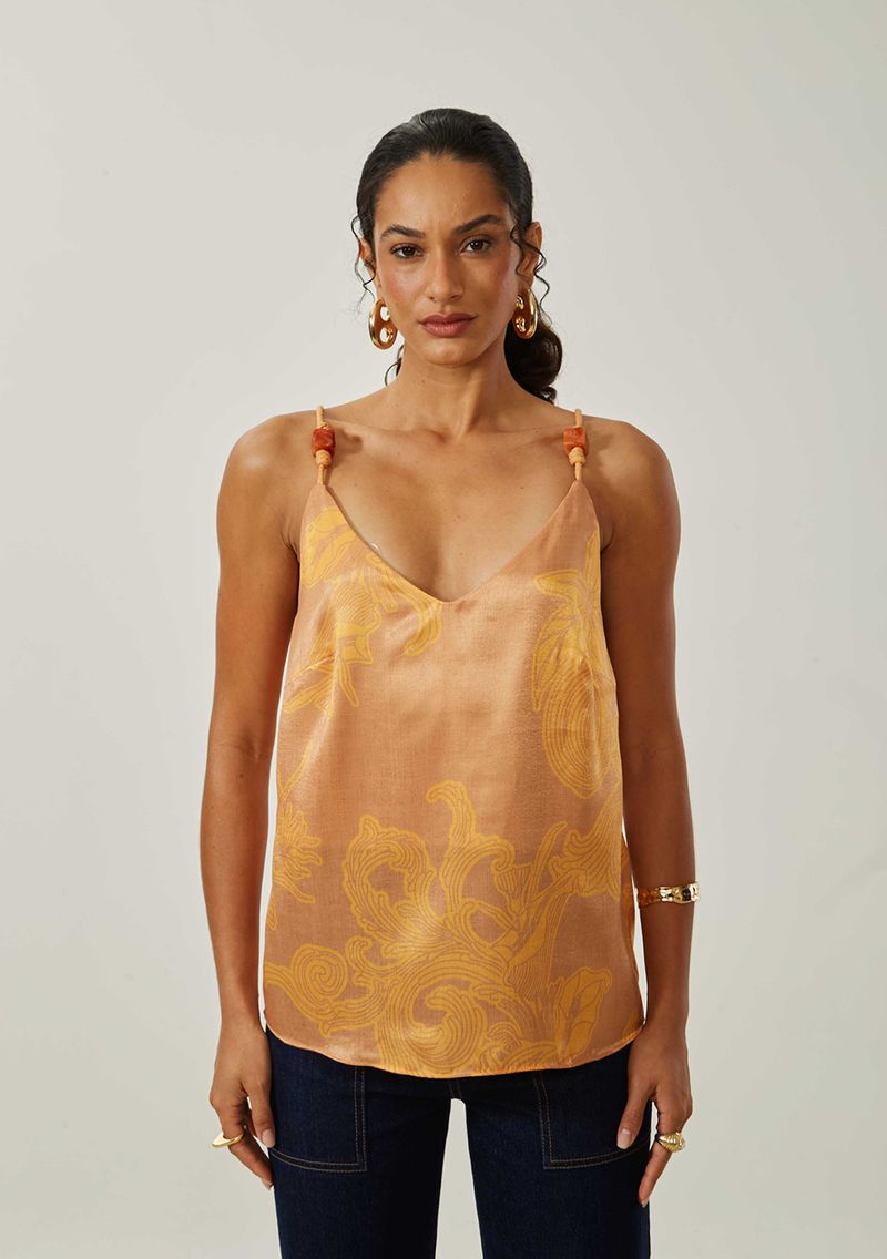 FemininoRoupasBlusasRegata Maria.Valentina Solta Decote V Alongada Bege