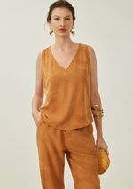 FemininoRoupasBlusasRegata Maria.Valentina Solta Decote V Padrão Marrom