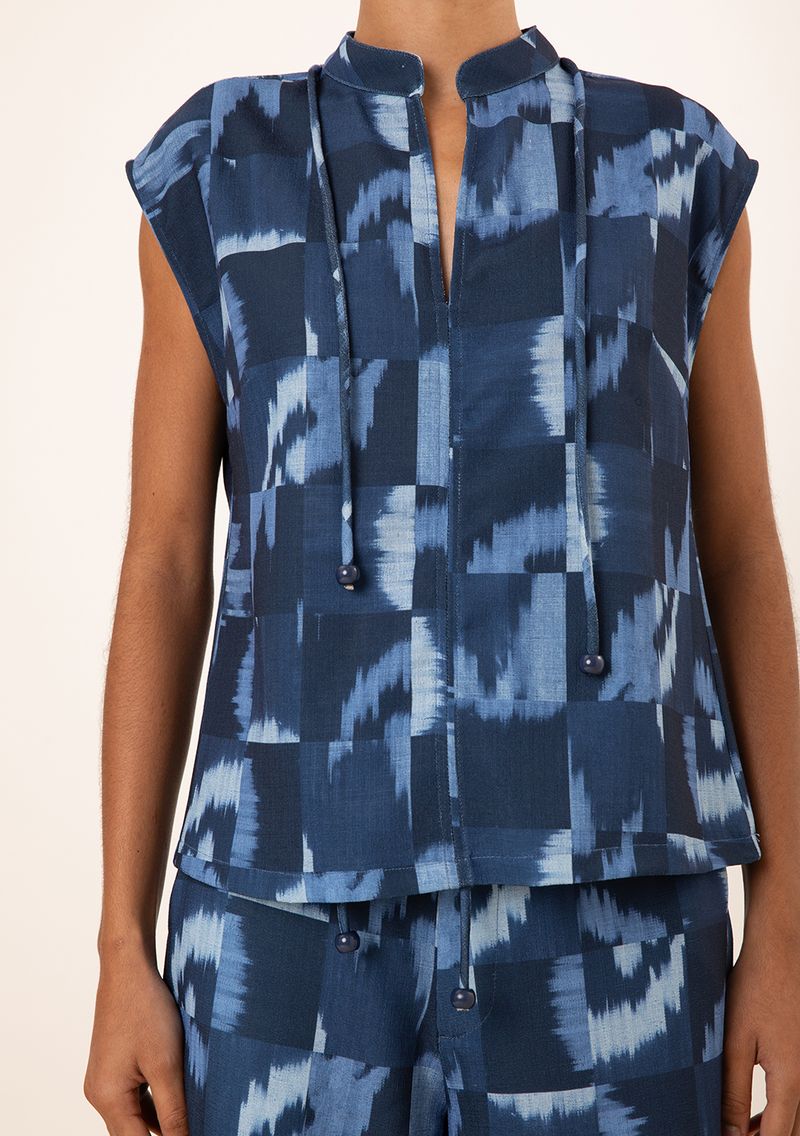 FemininoRoupasBlusasRegata Maria.Valentina Solta Gola Alta Padrão Azul