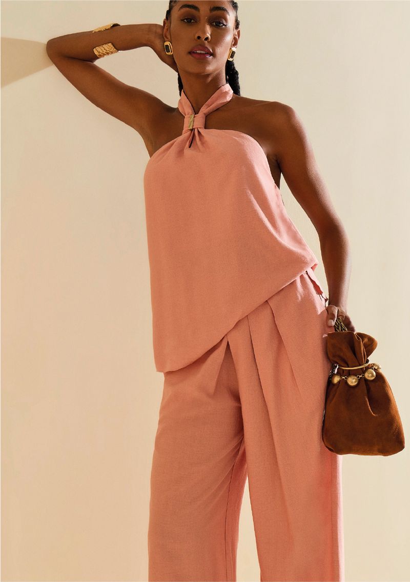 Regata Morena Rosa Ajustada Cava Francesa Padrão Rosa