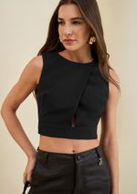 Regata Morena Rosa Ajustada Decote Careca Cropped Preto