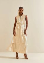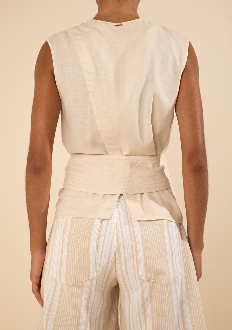 Regata Morena Rosa Ajustada Decote Careca Padrão Bege