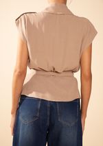 Regata Morena Rosa Ajustada Decote Transpassado Padrão Marrom