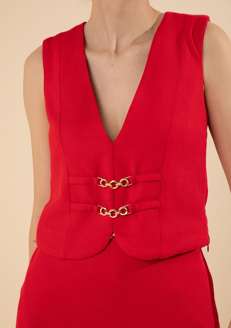 Regata Morena Rosa Ajustada Decote V Cropped Vermelho