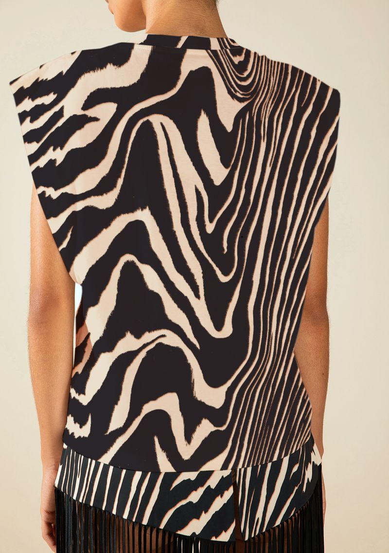 Regata Morena Rosa Ajustada Gola Alta Padrão Preto