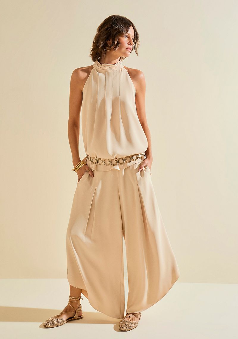Regata Morena Rosa Solta Cava Francesa Padrão Bege
