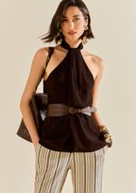 Regata Morena Rosa Solta Cava Francesa Padrão Marrom