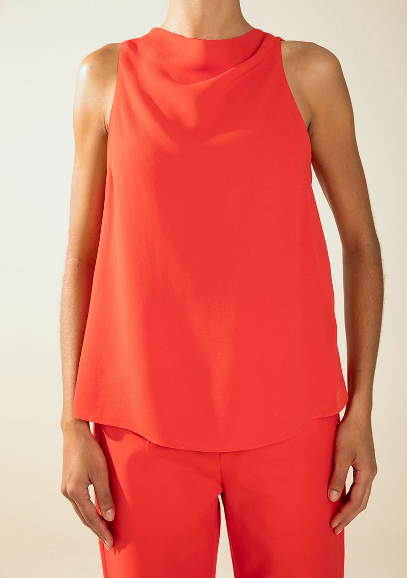 FemininoRoupasBlusasRegata Morena Rosa Solta Cava Francesa Padrão Vermelho