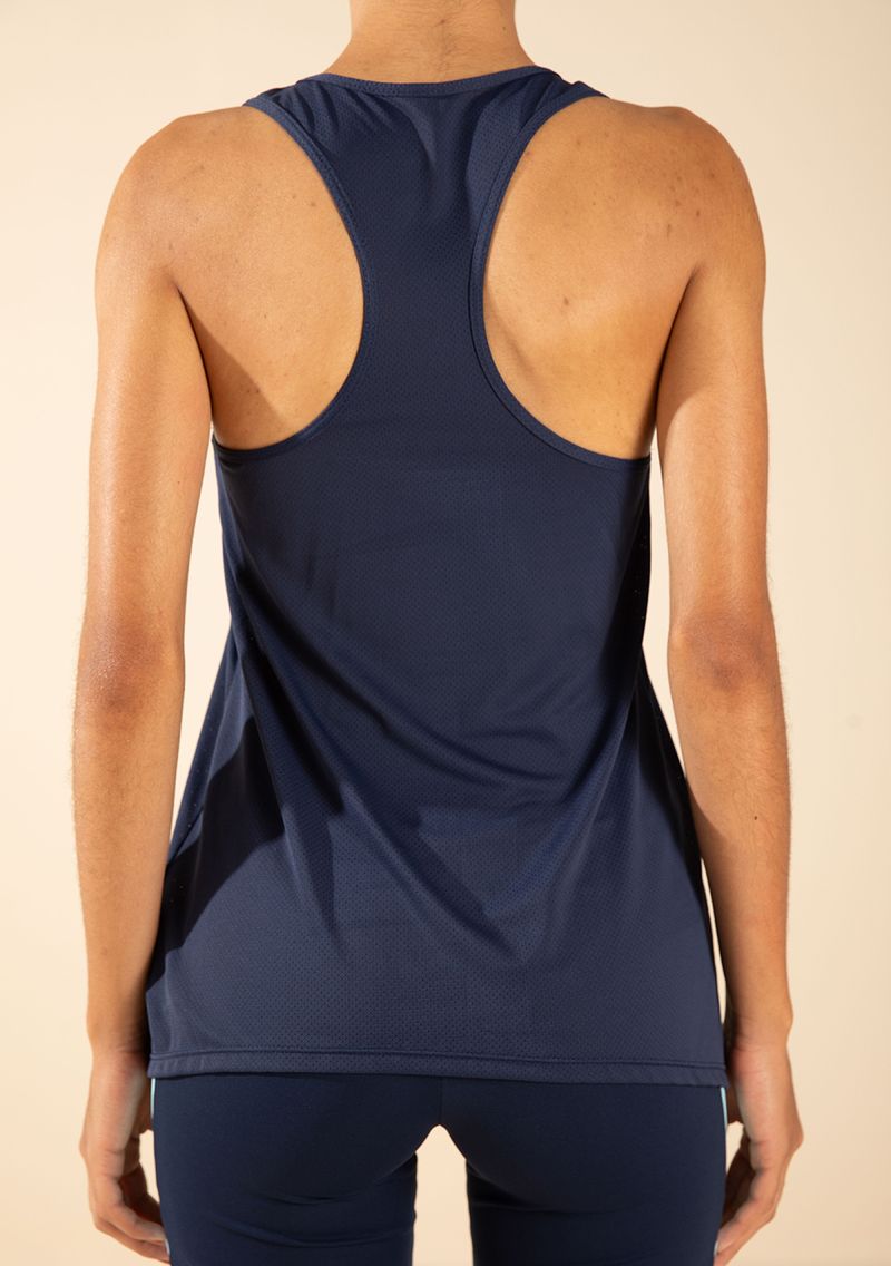 FemininoFitnessBlusasRegata Morena Rosa Solta Decote Careca Padrão Azul
