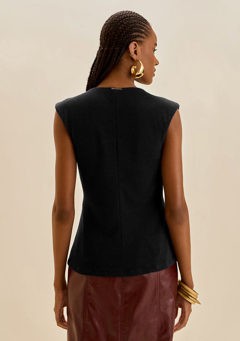 Regata Morena Rosa Solta Decote Careca Padrão Preto