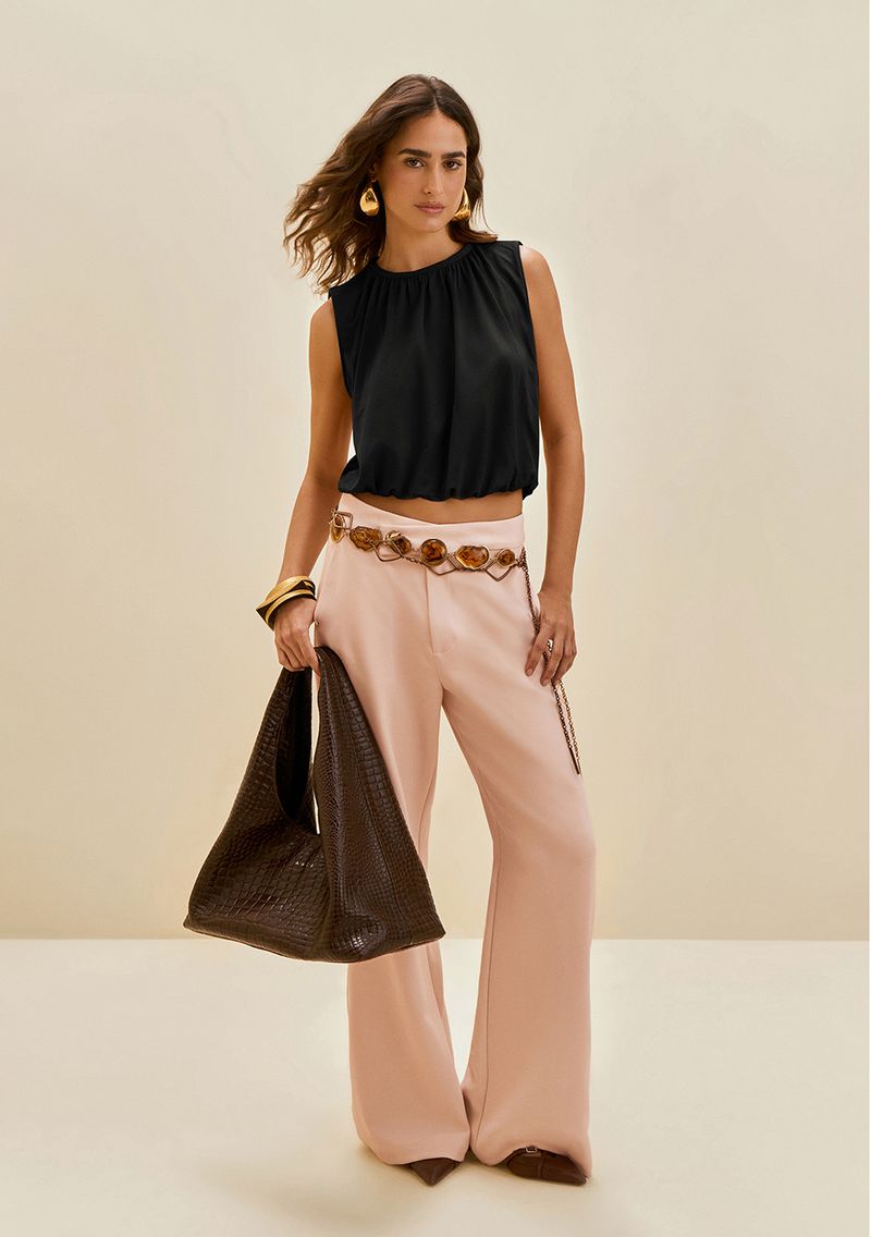 Regata Morena Rosa Solta Decote Careca Padrão Preto