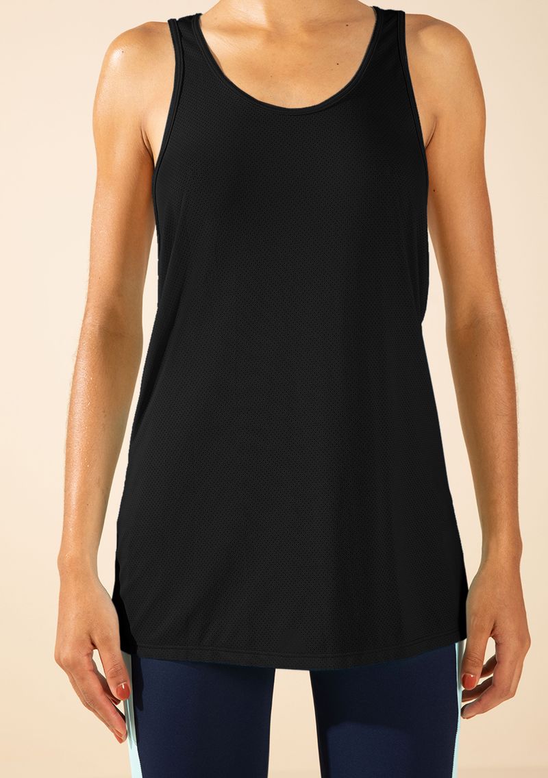 Regata Morena Rosa Solta Decote Careca Padrão Preto