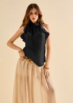 Regata Morena Rosa Solta Decote Costas Padrão Preto