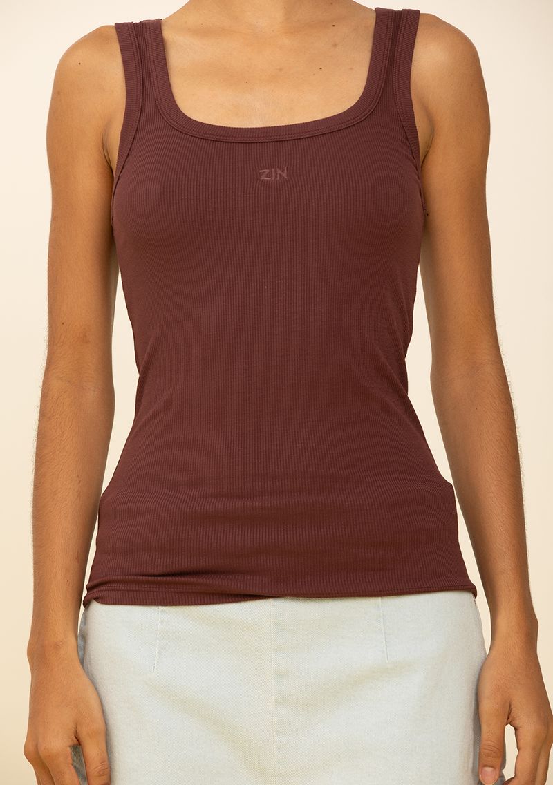 Regata Zinco Ajustada Decote Careca Padrão Marrom