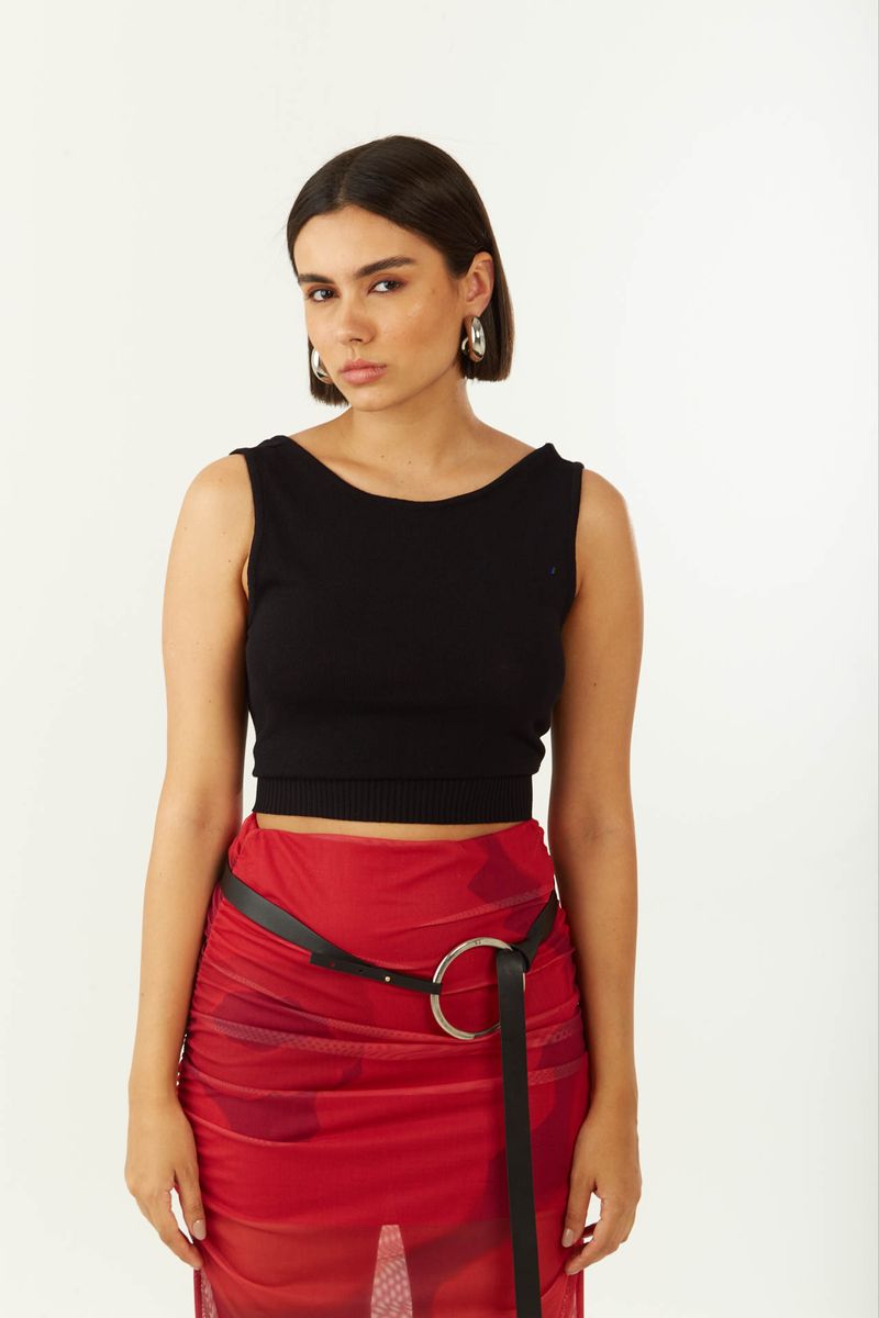 OUTLETFemininoRoupasBlusasRegata Zinco Ajustada Decote Careca Padrão Preto