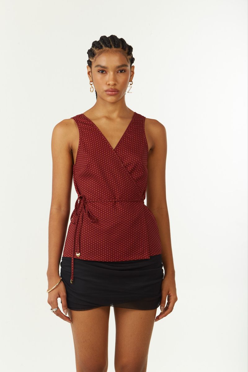 FemininoRoupasBlusasRegata Zinco Ajustada Decote Transpassado Padrão Bordo