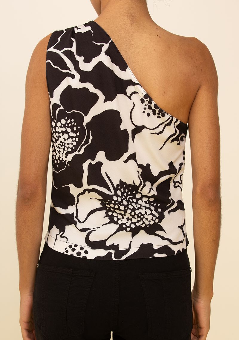 Regata Zinco Ajustada Um Ombro Só Padrão Preto