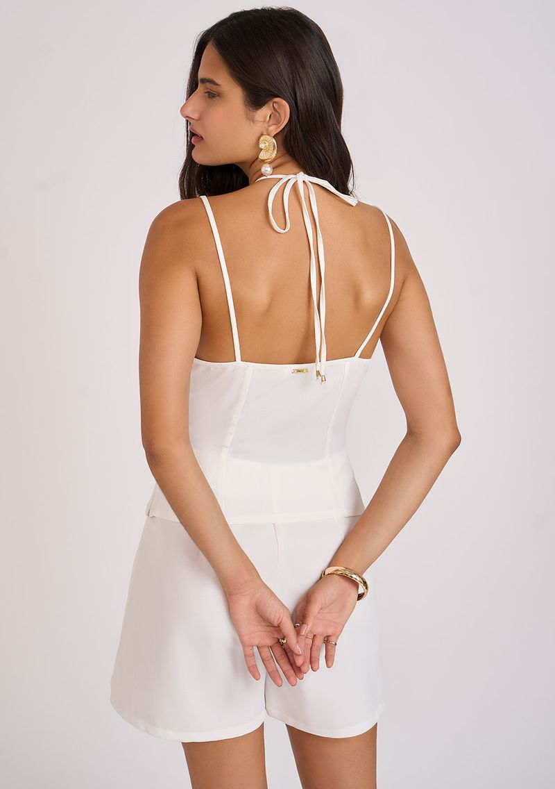 Regata Zinco Decote V Detalhe Argola Off White