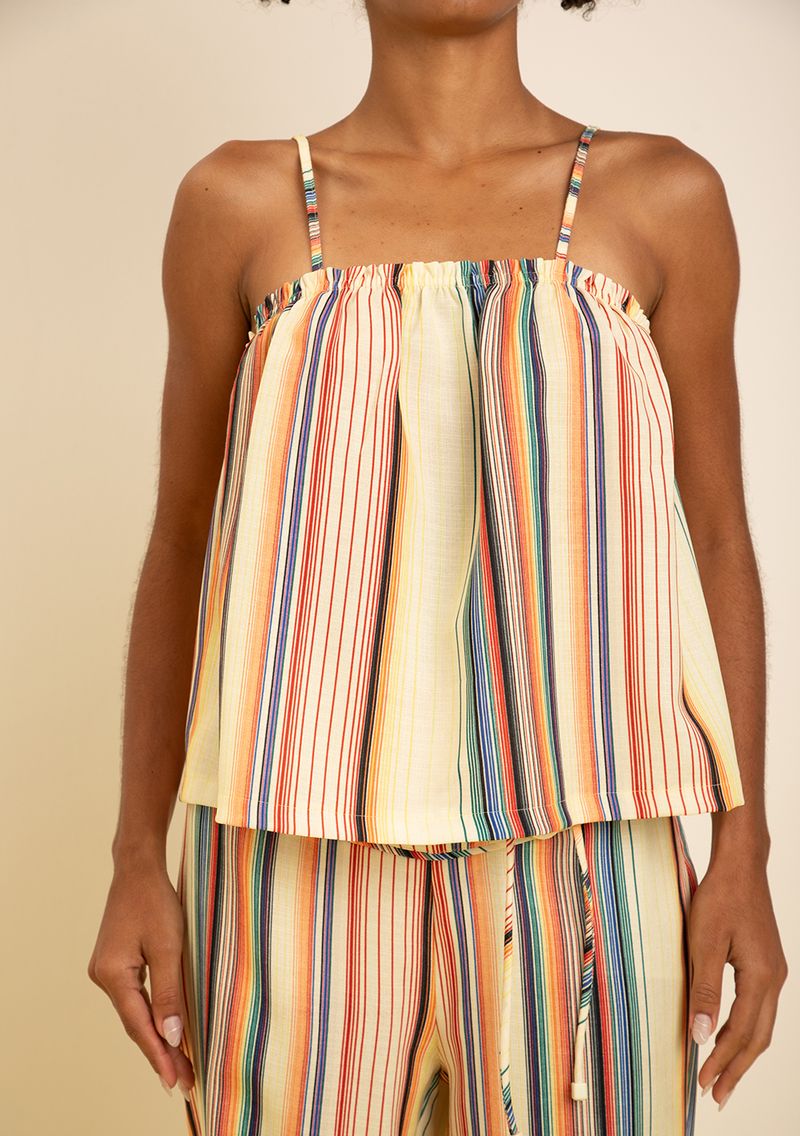 Regata Zinco Solta Decote Quadrado Padrão Amarelo