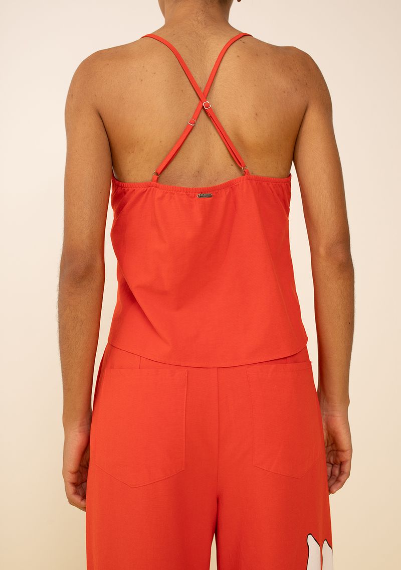 FemininoRoupasBlusasRegata Zinco Solta Decote V Padrão Vermelho