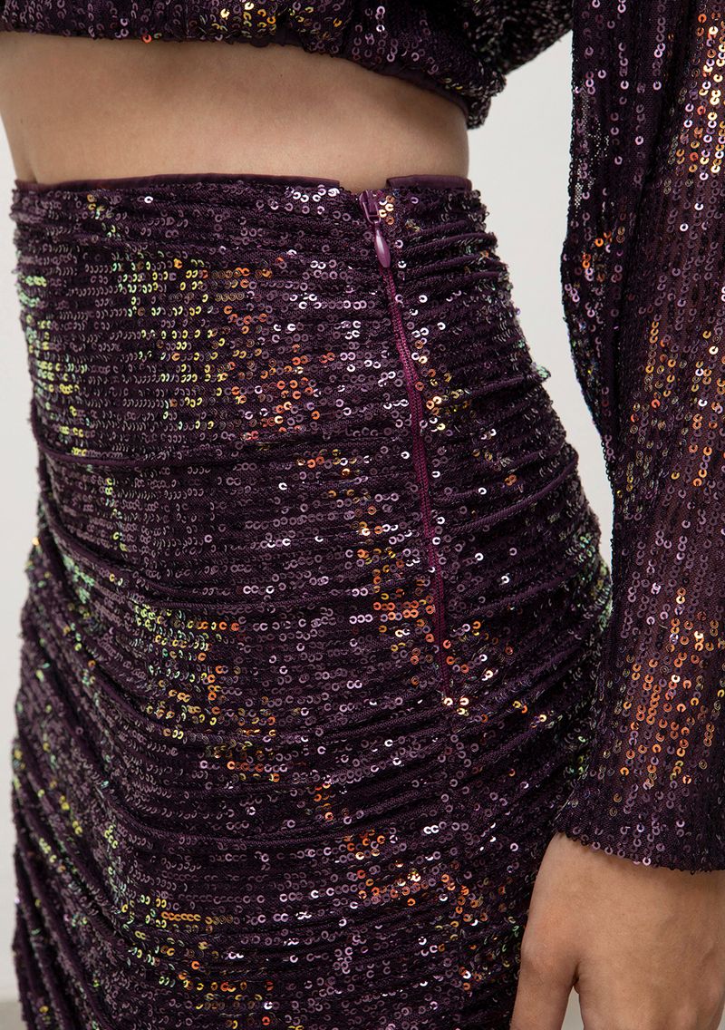 Saia Iódice Curta Justa Com Recorte Roxo