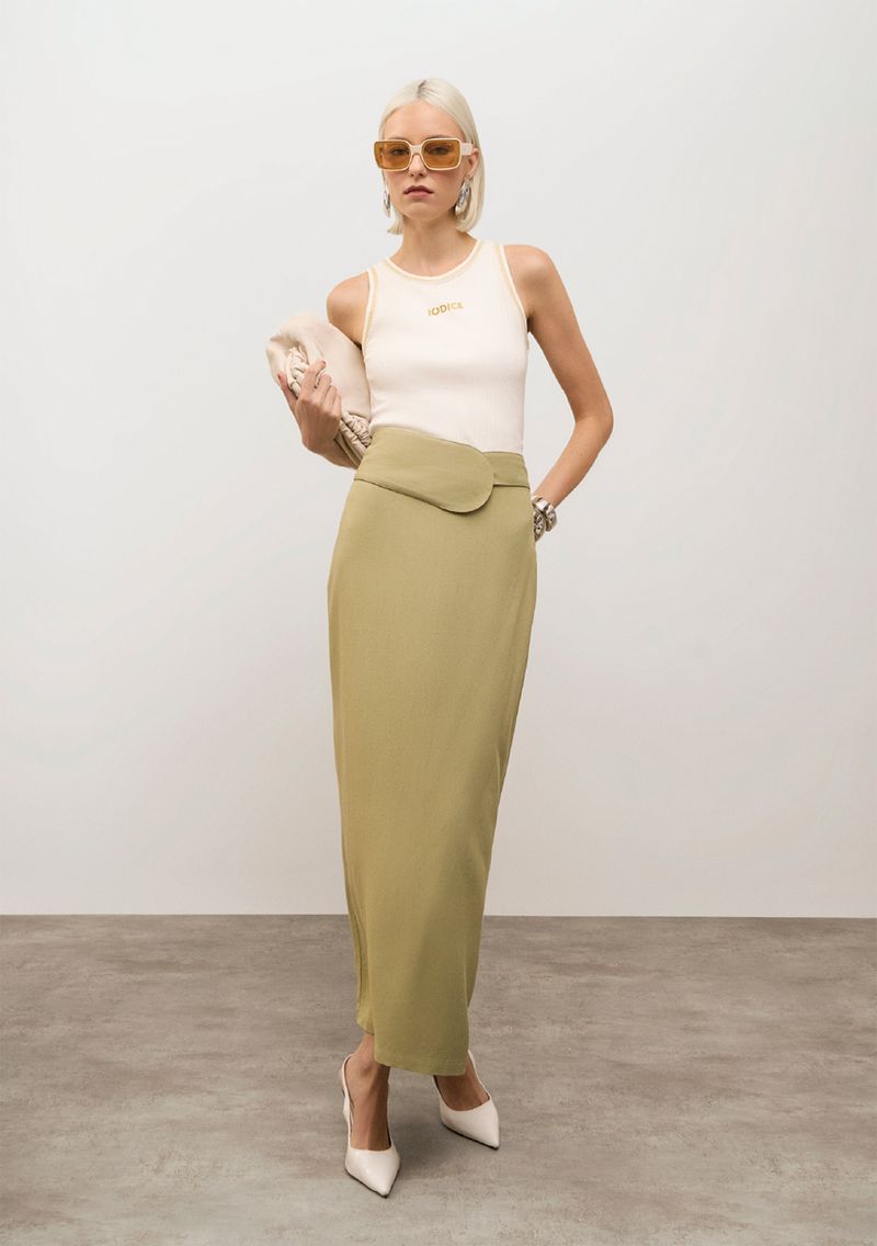 OUTLETFemininoRoupasSaiasTricotsAlfaiatariaSaia Iódice Lápis Alta Longa Verde