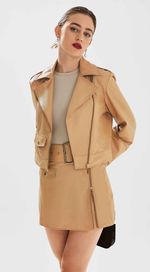 Saia Iódice Mini Reta Detalhe Zíper Bege