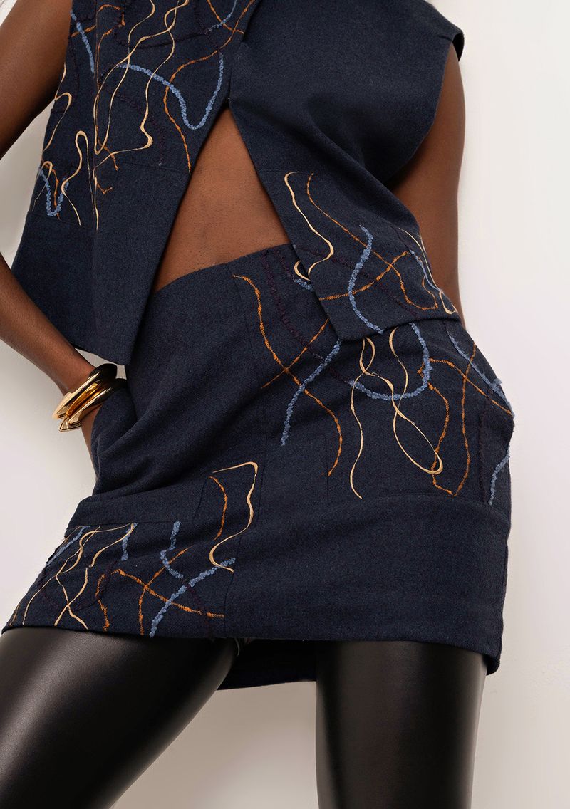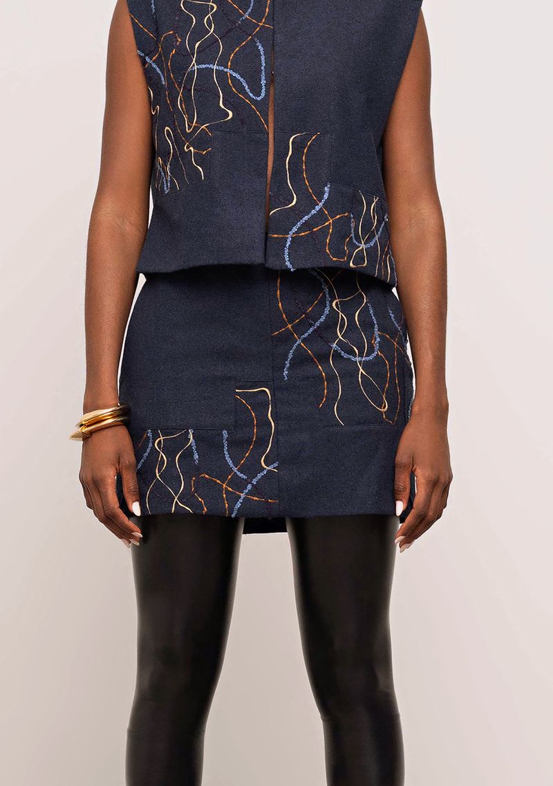 FemininoRoupasSaiasTricotsAlfaiatariaSaia Iódice Reta Alta Curta Azul