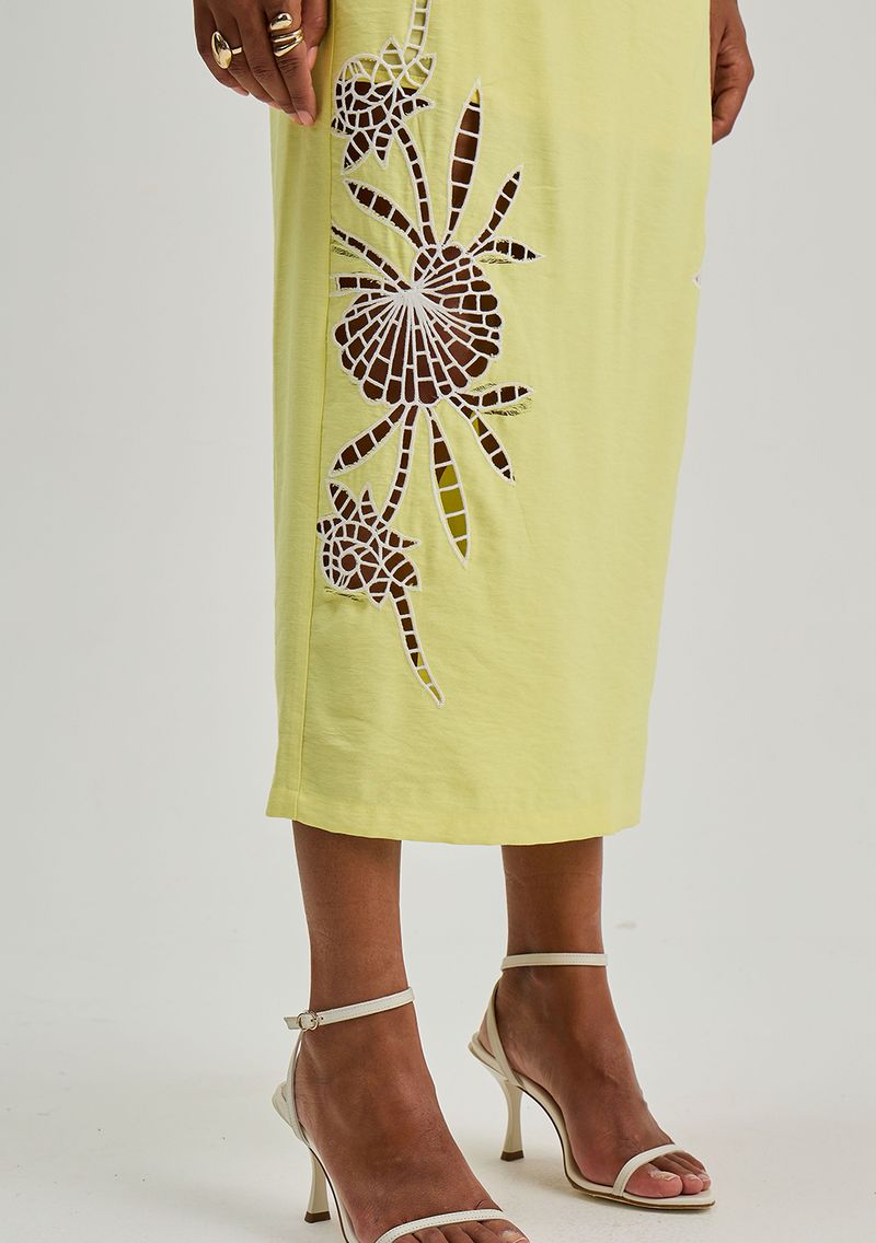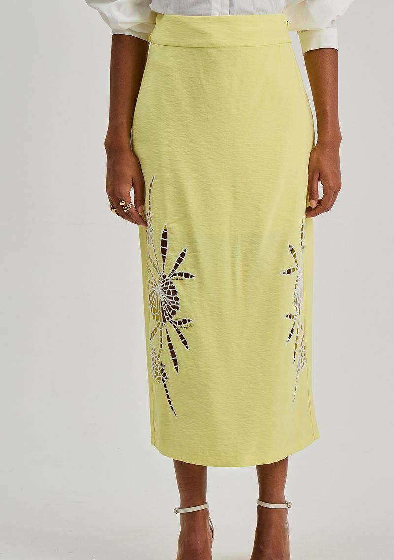 FemininoRoupasSaiasTricotsAlfaiatariaSaia Iódice Reta Alta Midi Amarelo