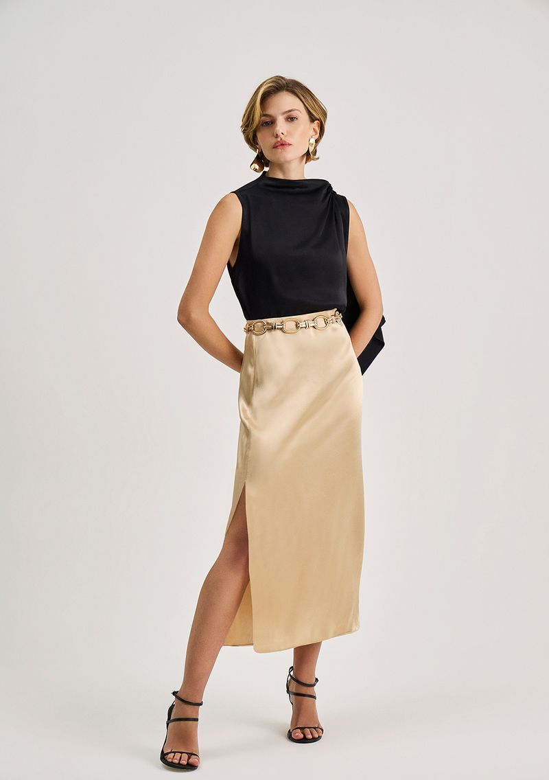 Saia Iódice Reta Alta Midi Rosa