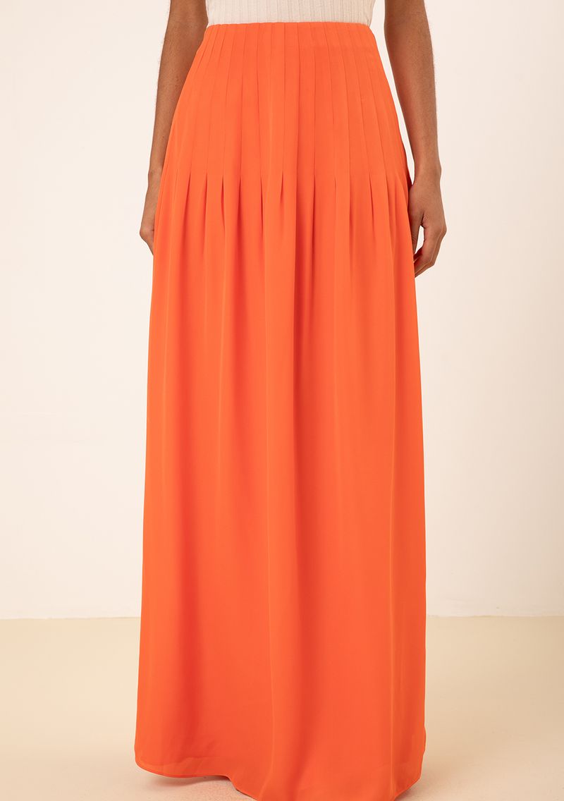 Saia Maria.Valentina Evasê Alta Longa Laranja