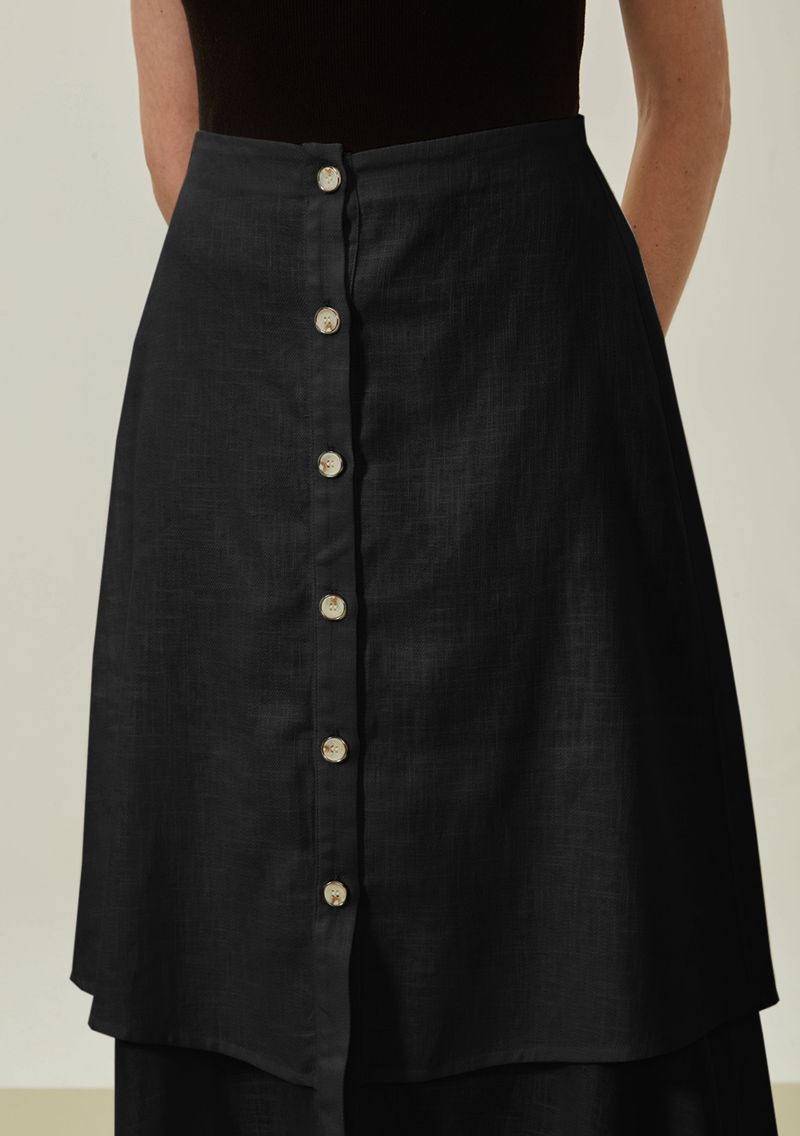 Saia Maria.Valentina Evasê Alta Longa Preto