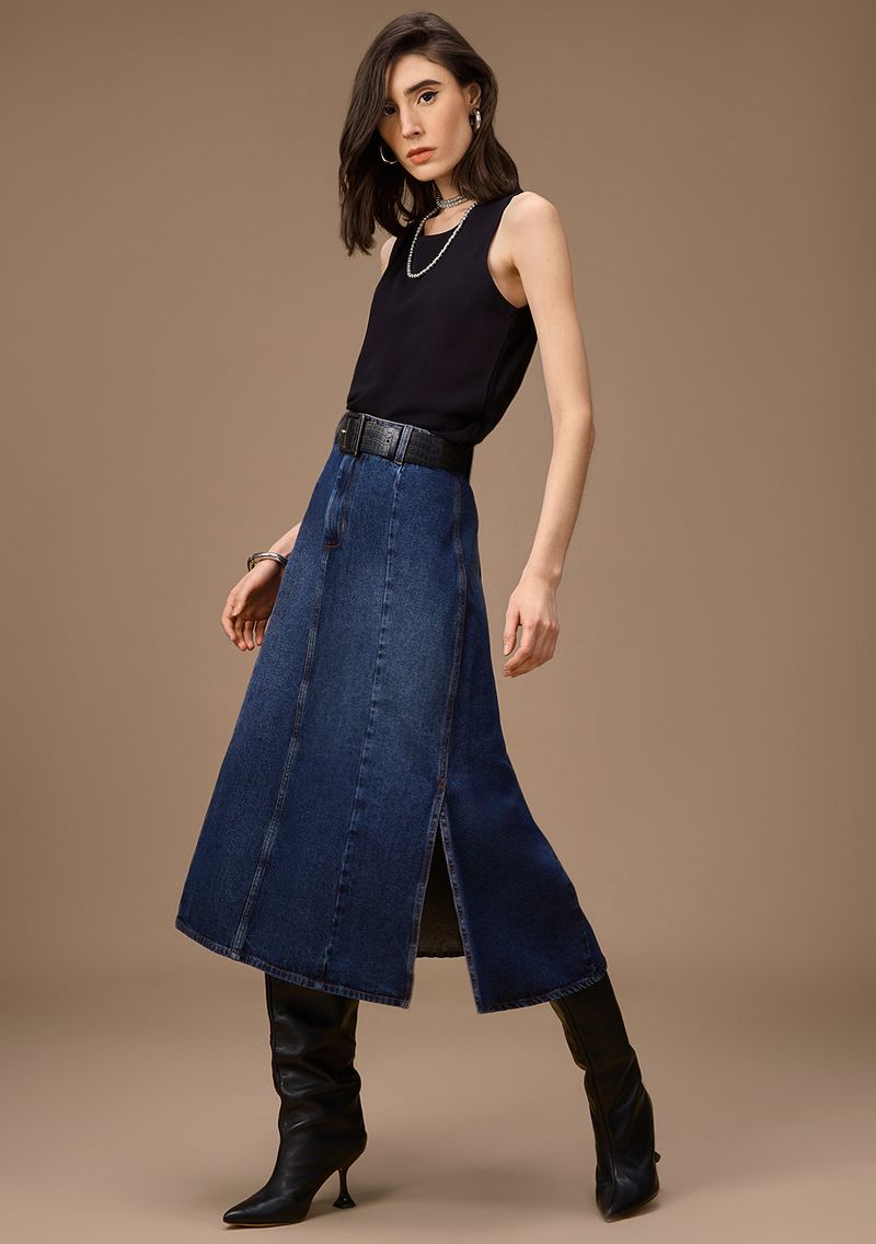 Saia Maria.Valentina Evasê Alta Midi Azul