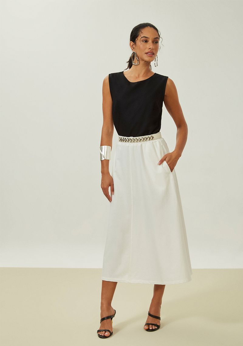 FemininoRoupasSaiasSaia Maria.Valentina Evasê Alta Midi Off White