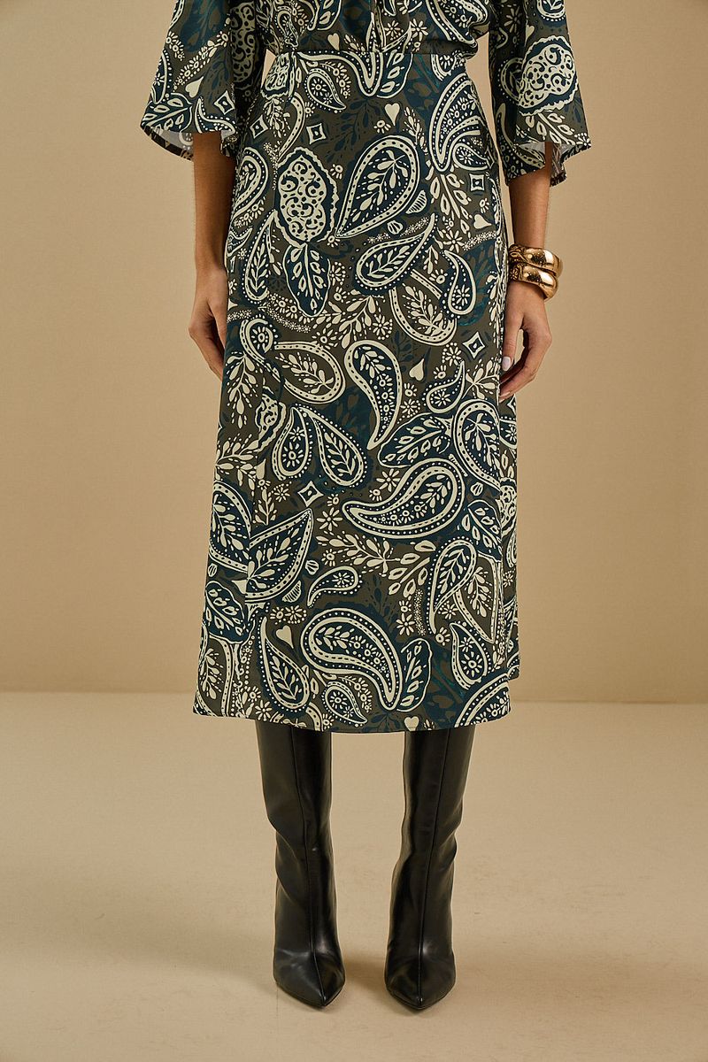 Saia Maria.Valentina Evasê Alta Midi Verde