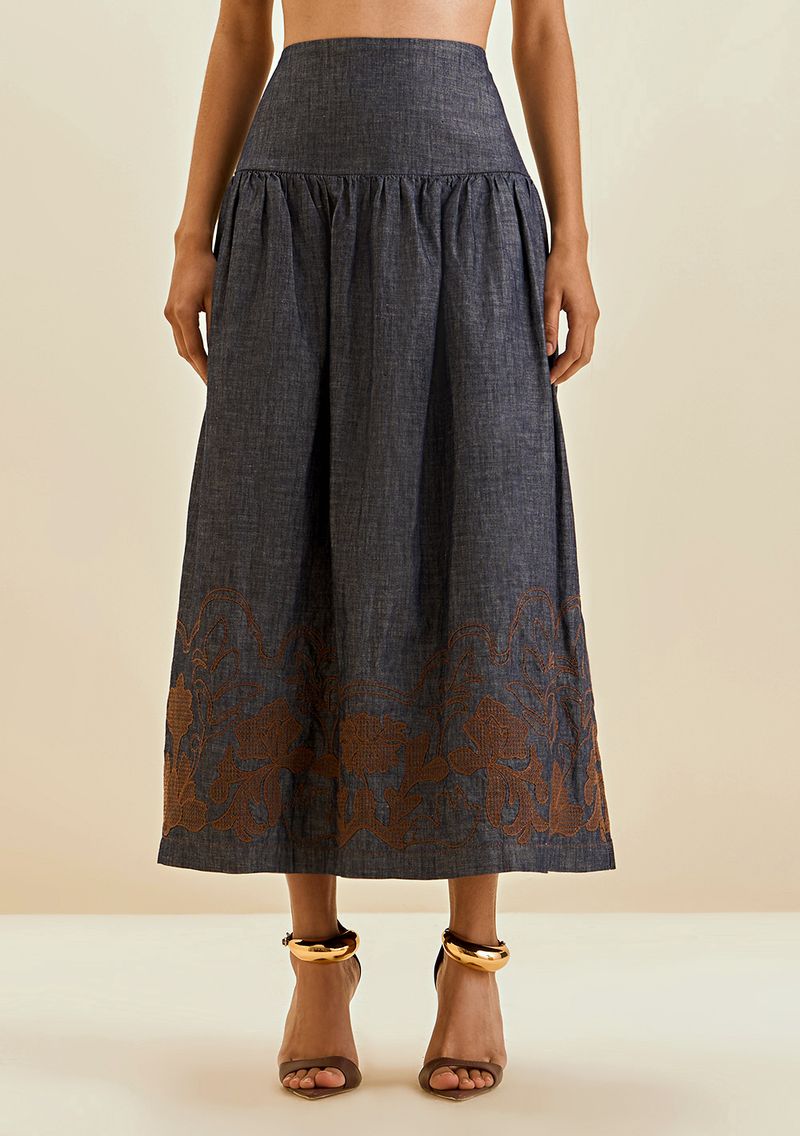OUTLETFemininoRoupasSaiasSaia Morena Rosa Evasê Alta Midi Azul