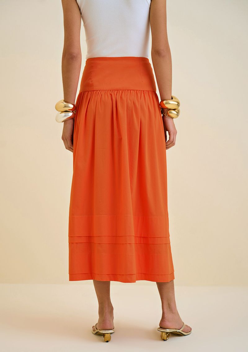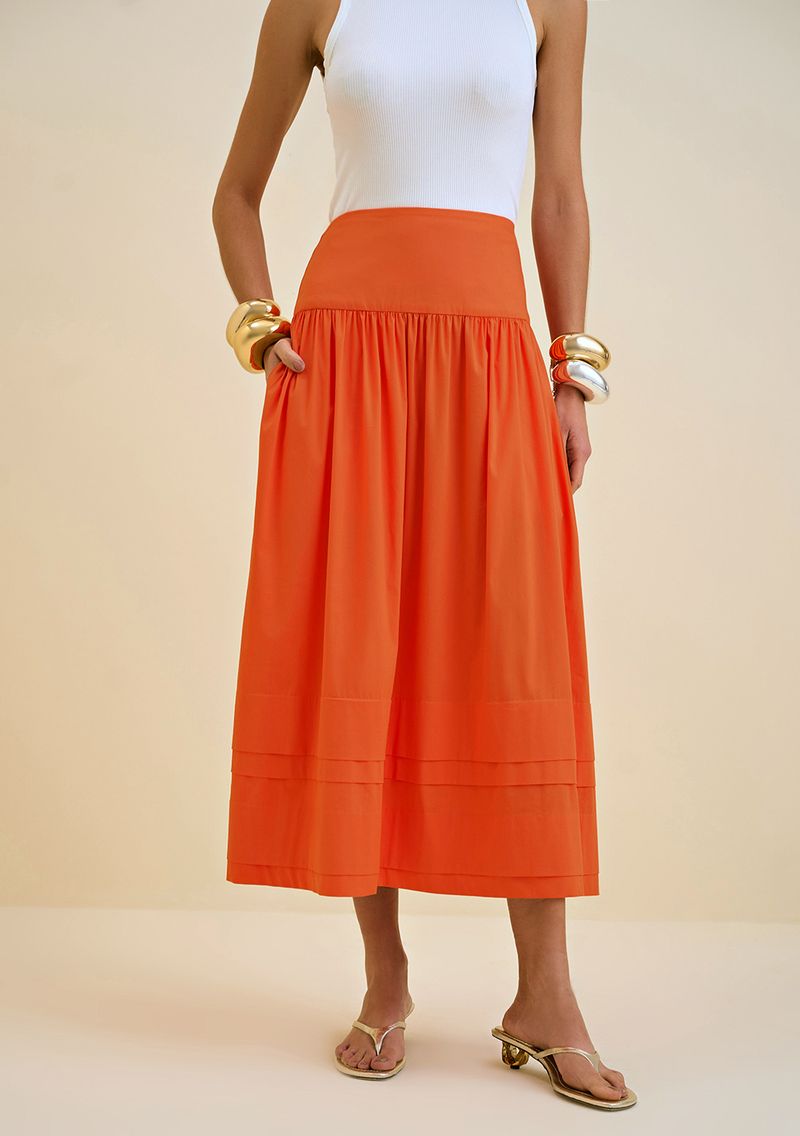 OUTLETFemininoRoupasSaiasSaia Morena Rosa Midi Evasê Com Zíper Laranja