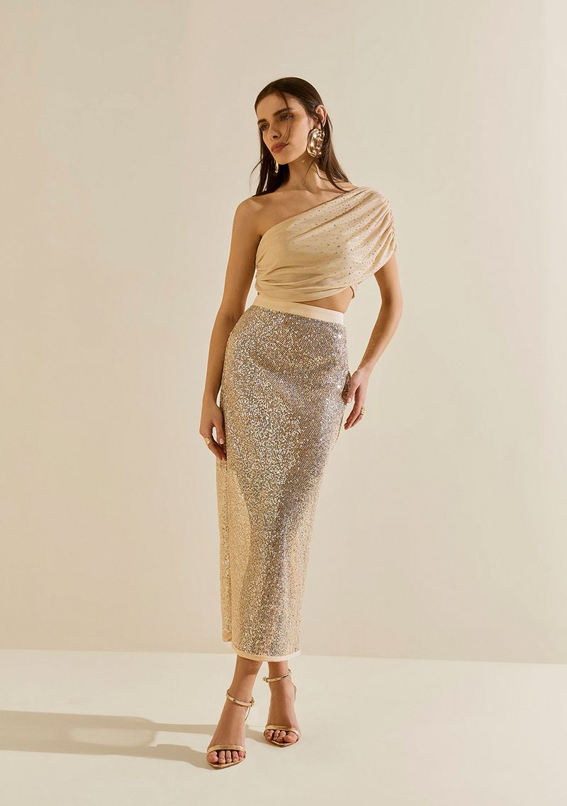 FemininoRoupasSaiasSaia Morena Rosa Reta Alta Midi Bege