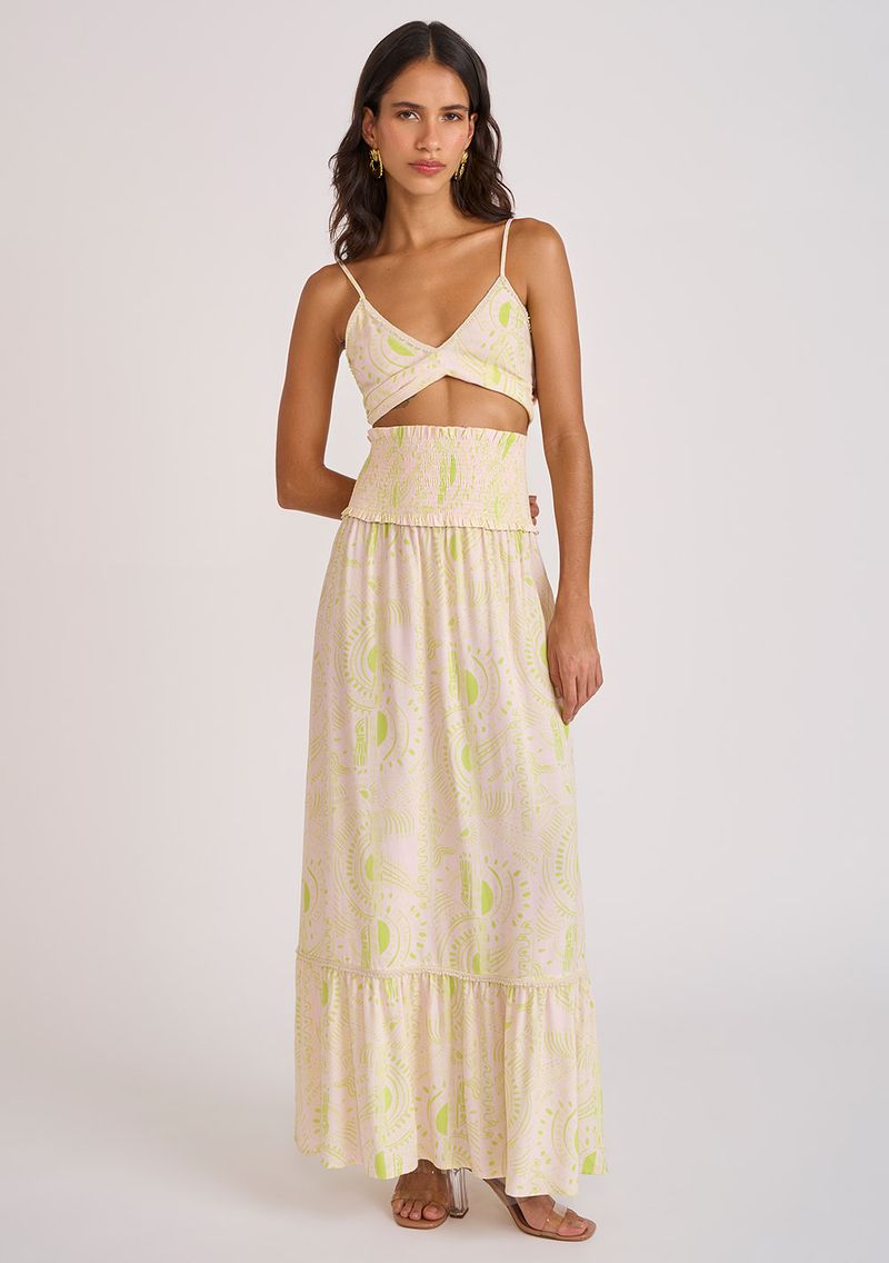 Saia Zinco Longa Fluida Detalhe Renda Verde Claro