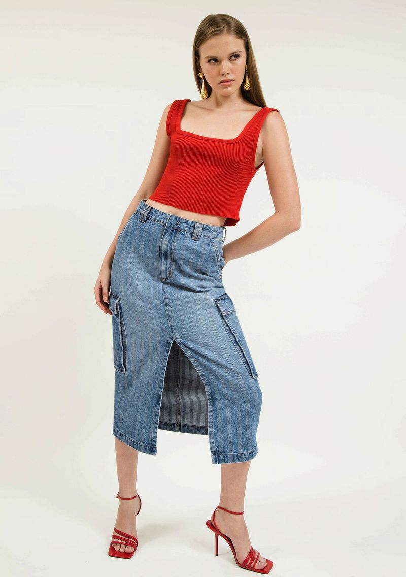Saia Zinco Midi Cargo Detalhe Bolso Azul