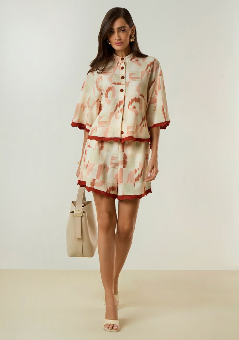 FemininoRoupasShorts e BermudasShorts Maria.Valentina Amplo Alta Bege