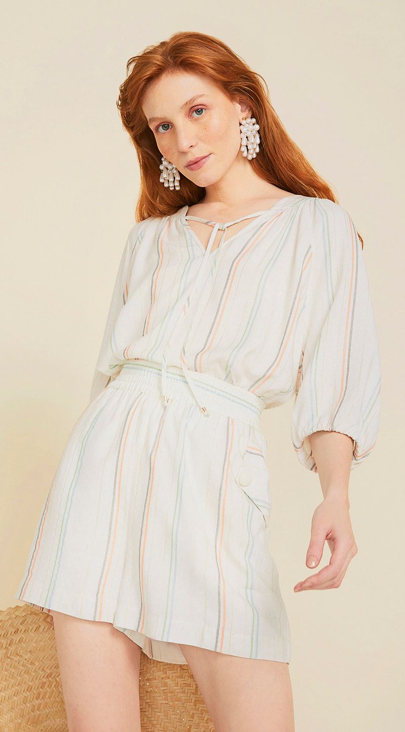 Shorts Maria.Valentina Boxer Detalhe Botão Cru