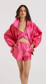 Shorts hot pants bolso faca barra arredondada. Esse Shorts hot pants é uma peça poderosa e cheia de atitude. Com um design inovador e um bolso faca elegante, ele é perfeito para um visual descolado e moderno. A barra arredondada adiciona um toque feminino à peça, enquanto a alfaiataria acetinada nesse incrível tom de rosa Pink, o torna uma opção elegante e sófisticada. Ideal para complementar suas composições mais fashionistas, esse shorts é uma escolha certeira para um look cool.