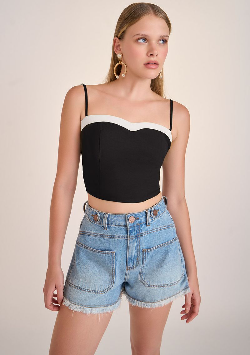 Shorts Zinco Five Pockets Detalhe Botão Jeans