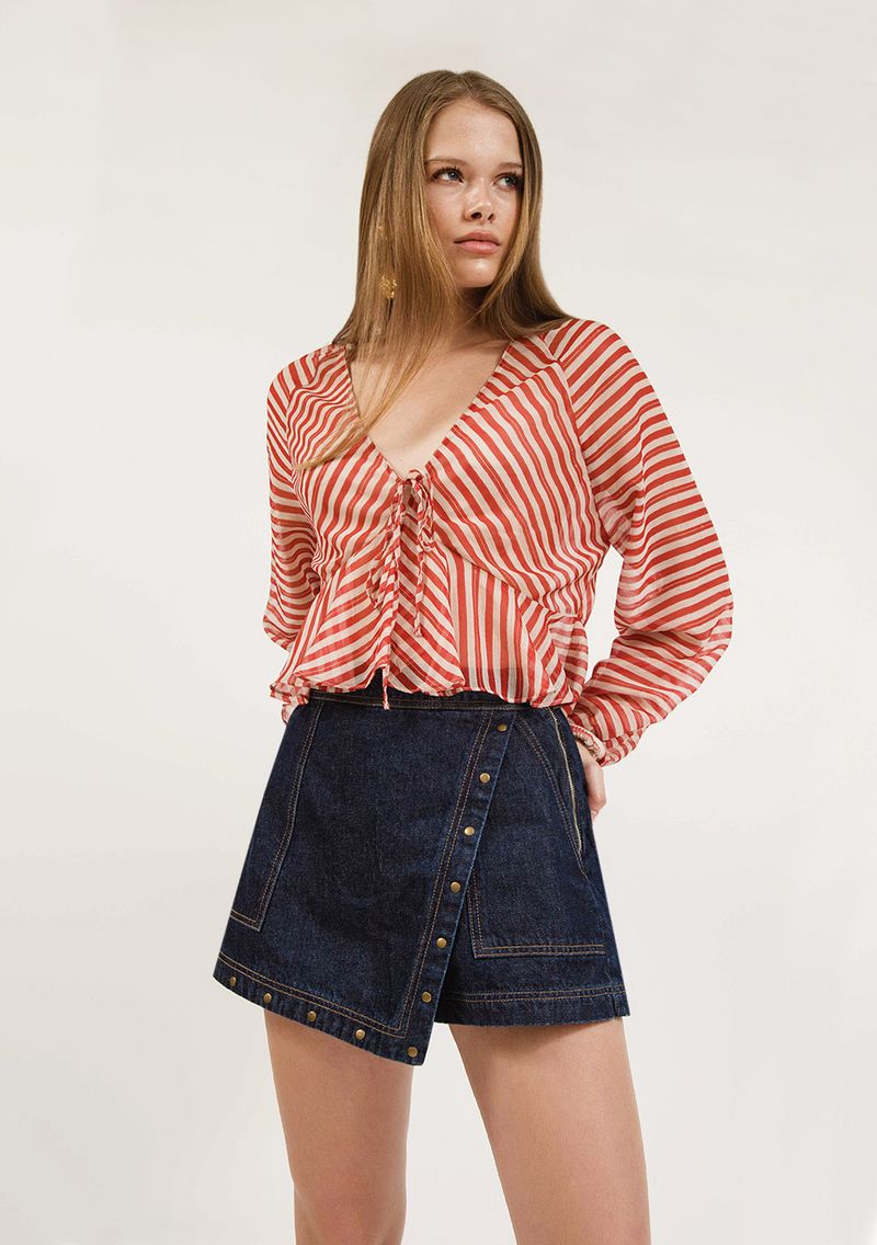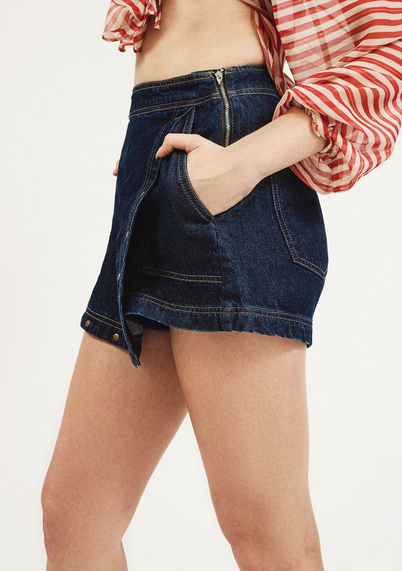 Shorts Zinco Saia Barra Assimétrica Jeans