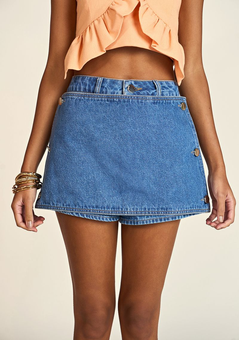 OUTLETFemininoRoupasShorts e BermudasShorts Zinco Saia Detalhe Botão Jeans