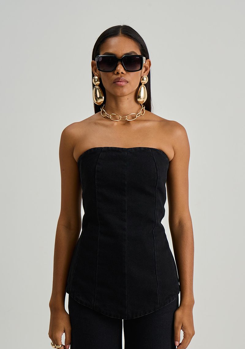 FemininoRoupasBlusasTop Iódice Decote Reto Sem Alça Preto