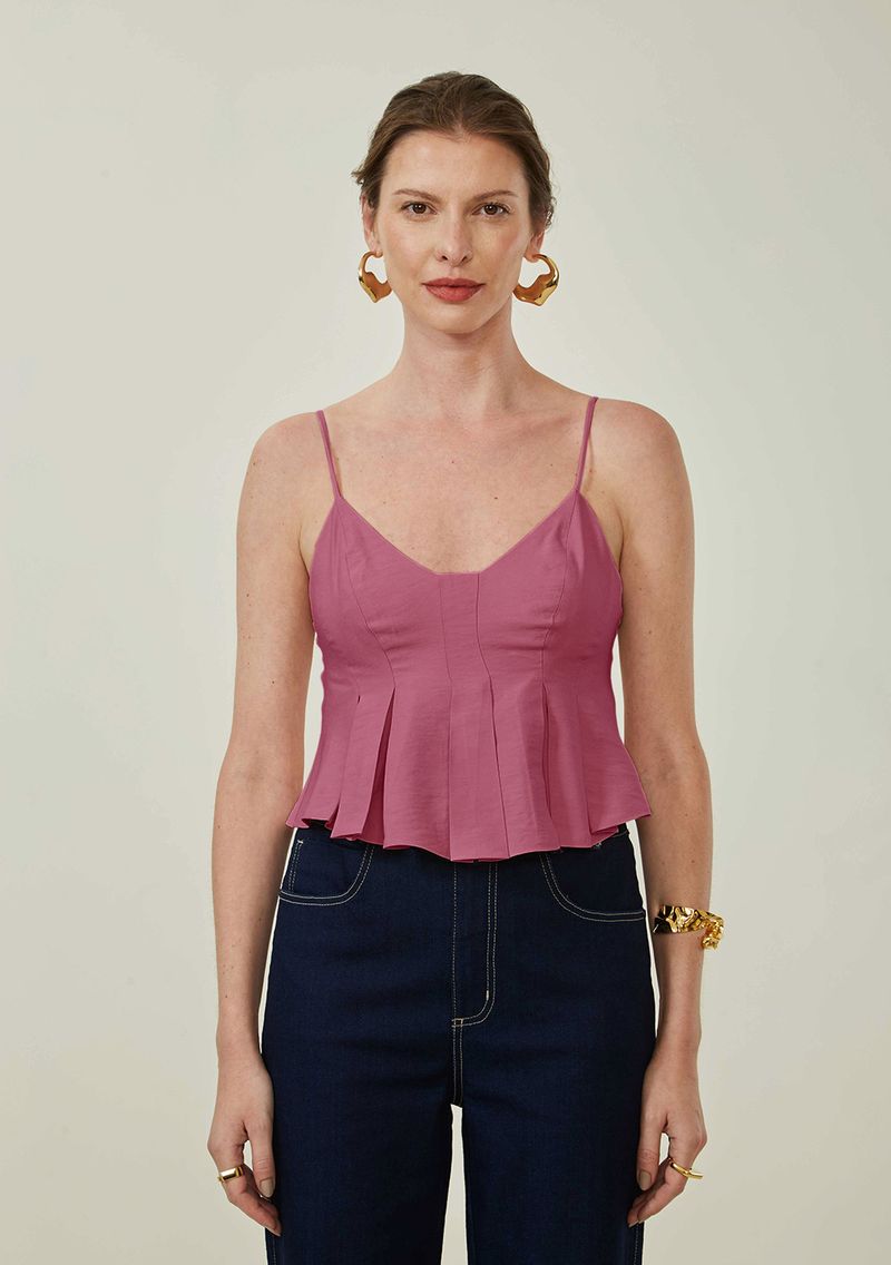 Top Maria.Valentina Decote Quadrado Alça Fina Rosa