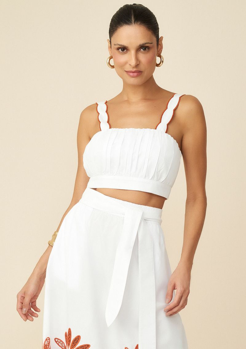 Top Maria.Valentina Justo Alça Larga Bordado Off White